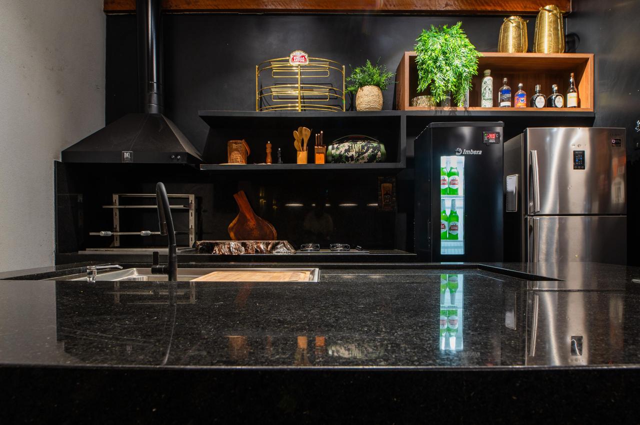 em granito e churrasqueira gourmet com exaustor industrial